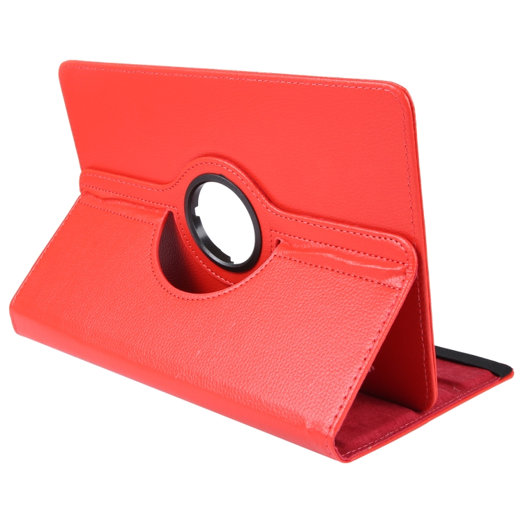 - 1x Funda para Tablet 10 Inch con Rotación 360° y Textura Litchi en Cuero (Rojo)