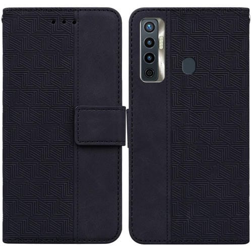 Funda para Tecno Camon 17 con diseño geométrico en cuero (Negro)