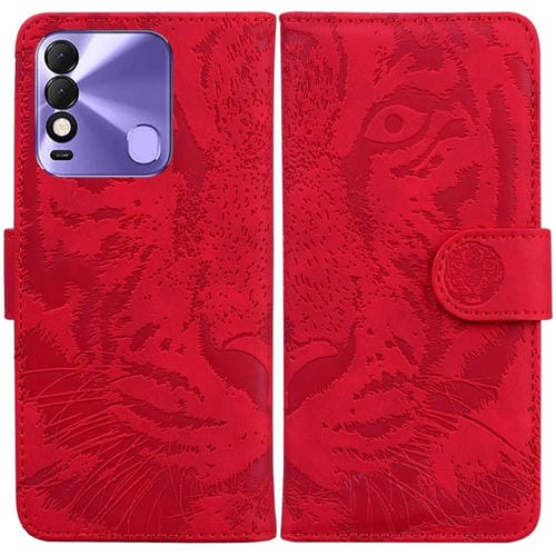 Funda para Tecno Spark 8 / 8T con patrón de tigre en relieve y tapa horizontal de cuero (Rojo)