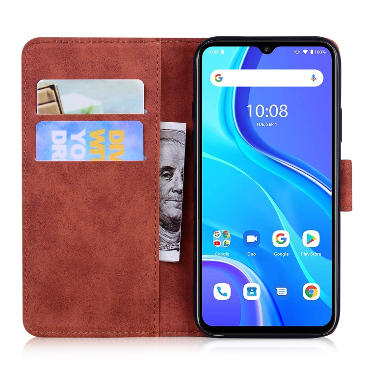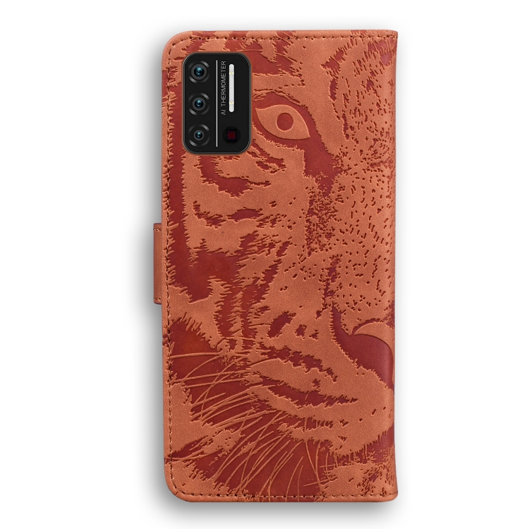Funda de cuero horizontal para Umidigi A7S con patrón Tiger, tarjetero y billetera (Marrón)