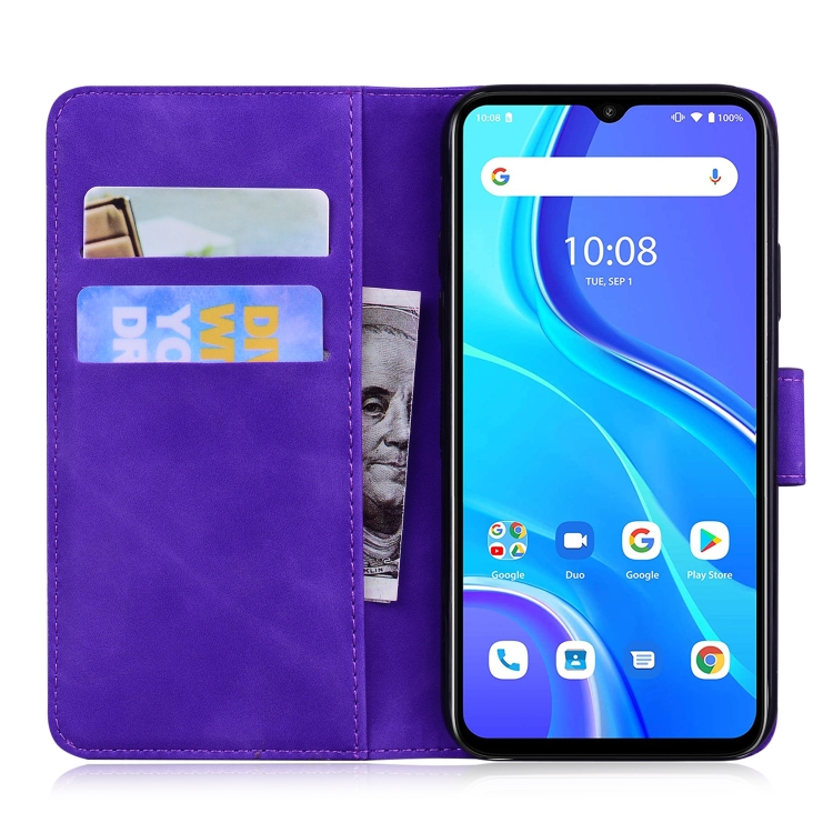 Funda de Cuero Horizontal para Umidigi A7S con Soporte, Ranuras para Tarjetas y Billetera (Morado)