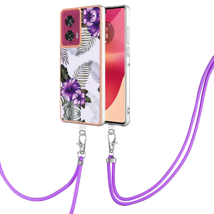 Funda TPU a Prueba de Golpes con Patrón Galvanoplastia Imd para Motorola Edge 50 Fusion con Cordón (Flor Morada)