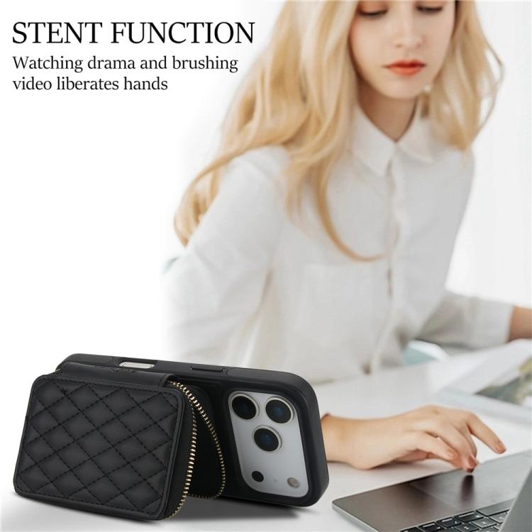 Funda AwQuer con cierre cruzado y parte trasera de cuero romboidal para iPhone 17 Pro (negra)