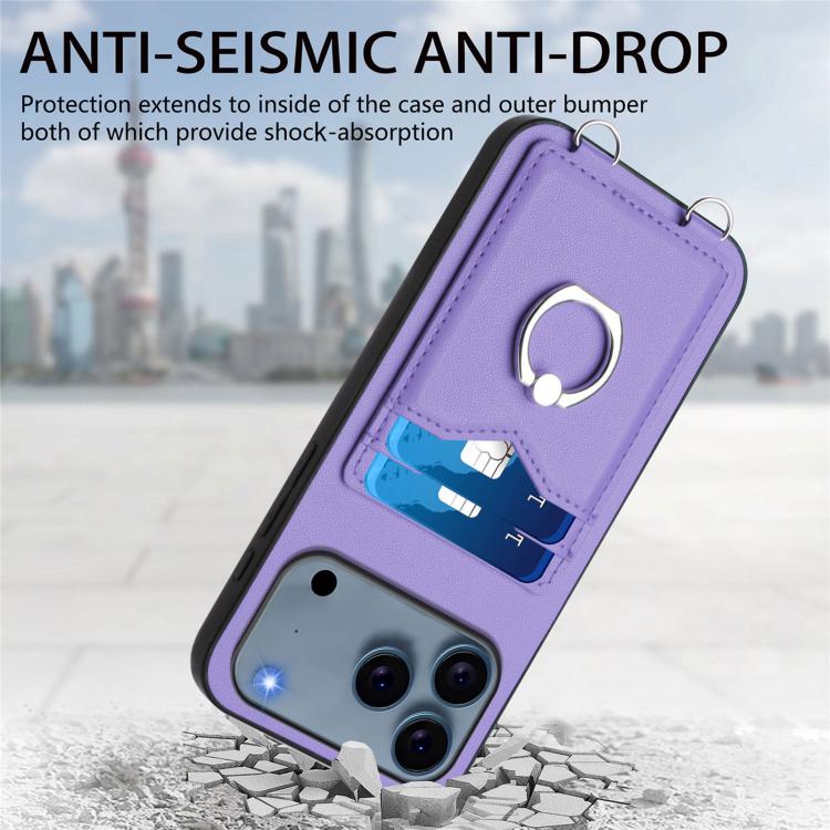 Funda con tarjetero y anillo para iPhone 17 Pro Max R20 (morado)