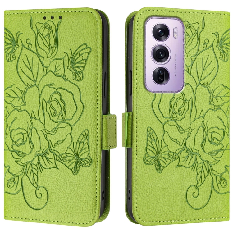 Funda de Cuero Antirrobo con Diseño de Rosa En Relieve para Oppo Reno12 Pro Global (Verde)