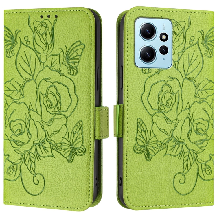 Funda de Cuero Antirrobo con Rfid y Diseño de Rosa En Relieve para Redmi Note 12 4G (Verde)