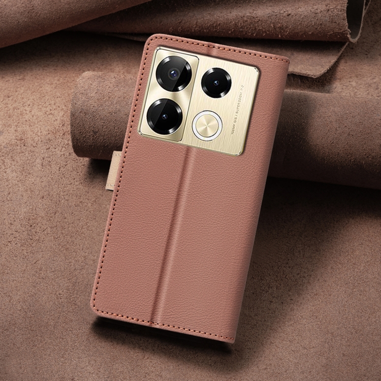 Funda de Cuero Antirrobo RFID para Infinix Note 40 Pro 5G/4G/40 Pro+ (Marrón)