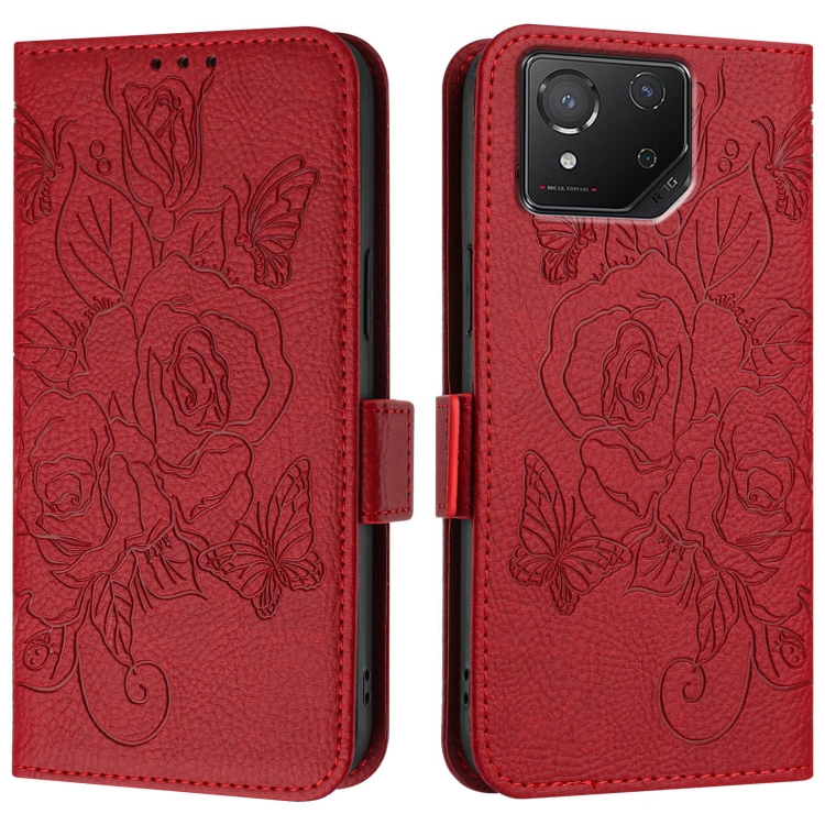 Funda de Cuero Antirrobo Rfid con Relieve para Asus Rog Phone 8/8 Pro (Roja)