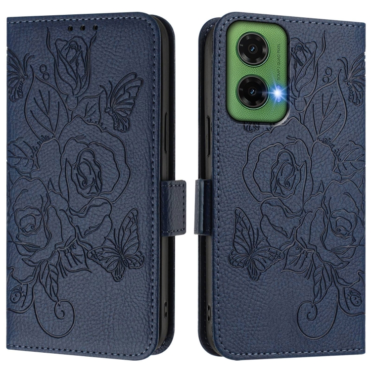 Funda de Cuero Antirrobo RFID con Relieve para Motorola Moto G35 (Azul Oscuro)