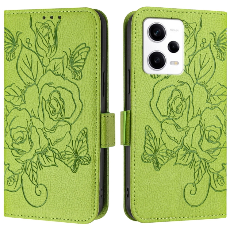 Funda de Cuero Antirrobo Rfid con Relieve En Rosa para Redmi Note 12 Pro+ 5G (Verde)