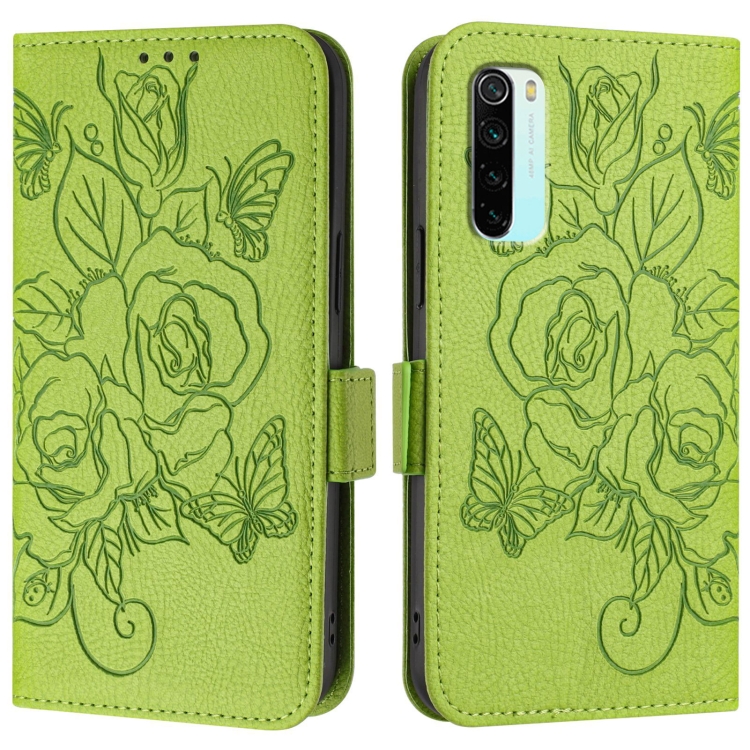 Funda de Cuero Antirrobo Rfid con Relieve En Rosa para Redmi Note 8 (Verde)