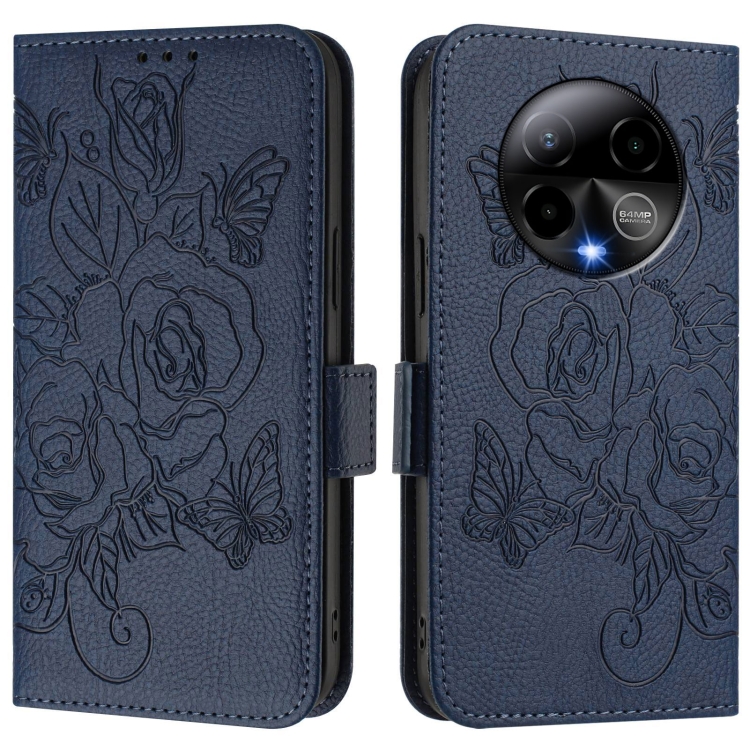 Funda de Cuero Antirrobo RFID con Relieve para Blu Bold K50 (Azul Oscuro)
