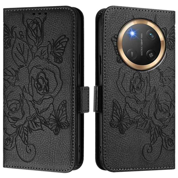 Funda de Cuero Antirrobo RFID con Relieve para Honor X9C 5G (Negro)