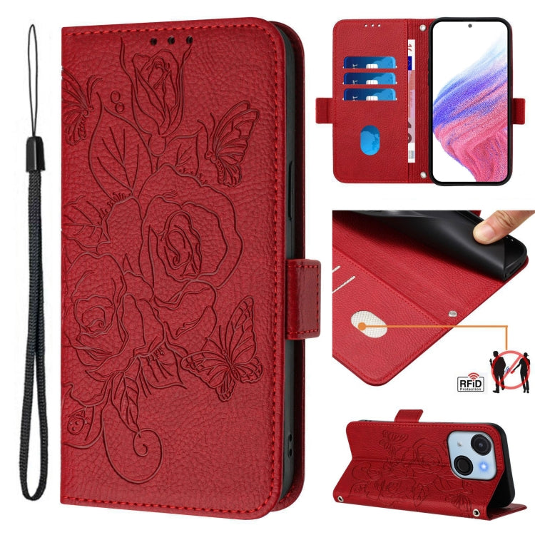 Funda de Cuero Antirrobo RFID con Relieve para Teléfono Itel A50C (Rojo)