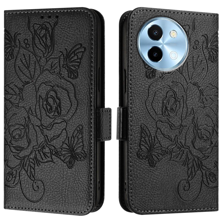 Funda de Cuero Antirrobo Rfid con Relieve En Rosa para Vivo Y38 5G / Y200I / T3X 5G (Negra)