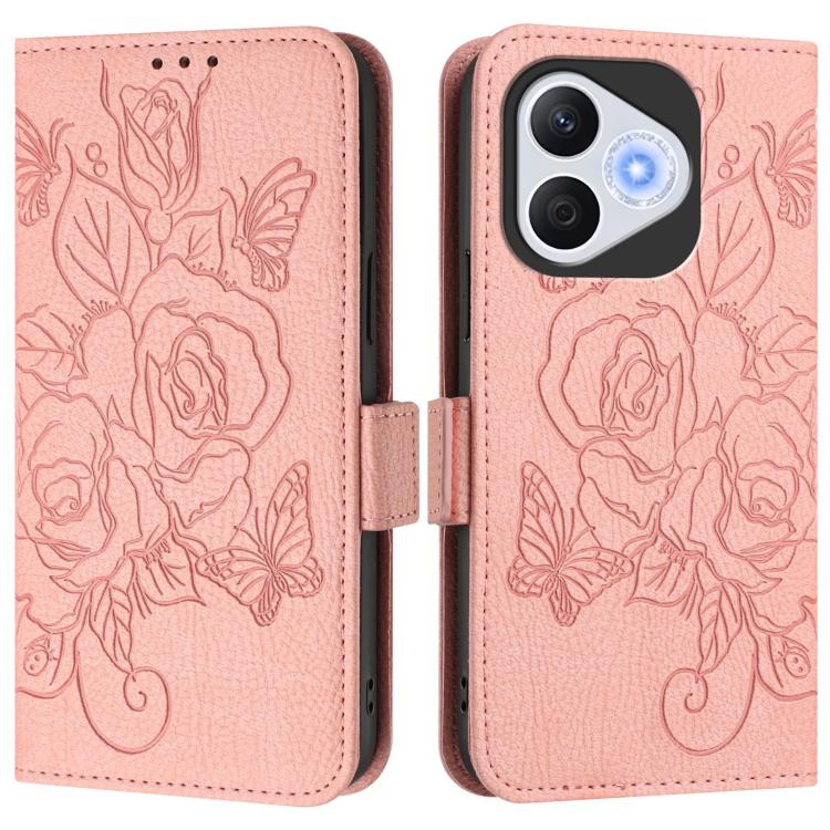 Funda de Cuero Antirrobo RFID con Relieve para Honor 400 Lite (Rosa)