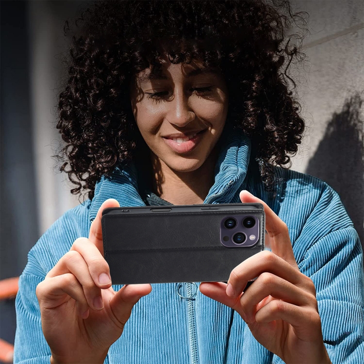 Funda de Cuero Antirrobo Rfid Lc.Imeeke para iPhone 16 Pro (Negra)