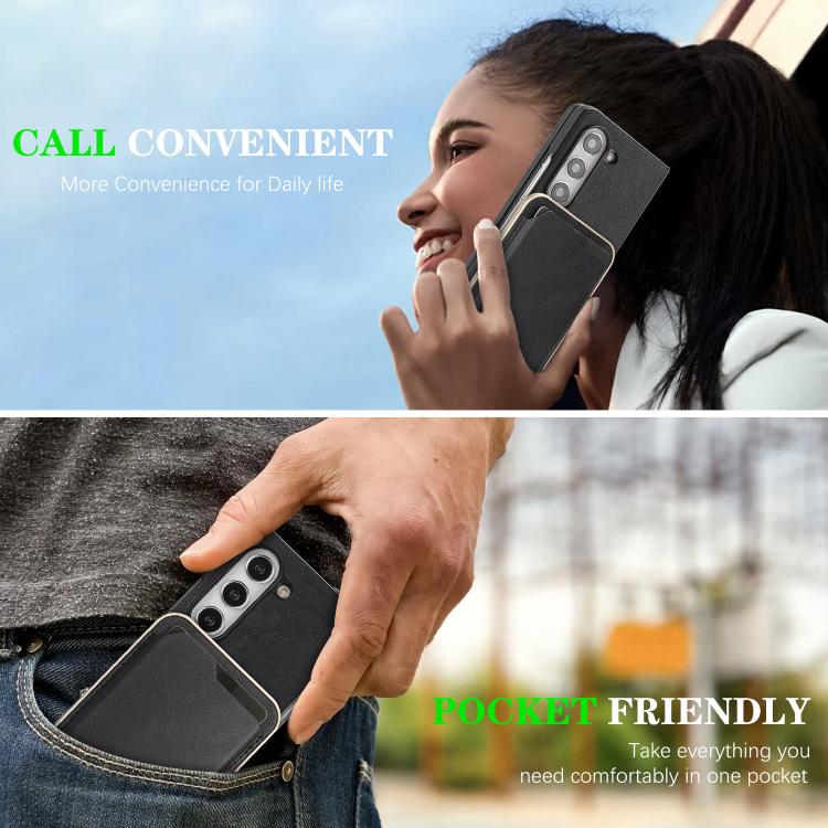 Funda de cuero con adhesivo lateral para Samsung Galaxy Z Fold6 Kalebol Slim MagSafe Ring Magnetic Card Bag (Negro)