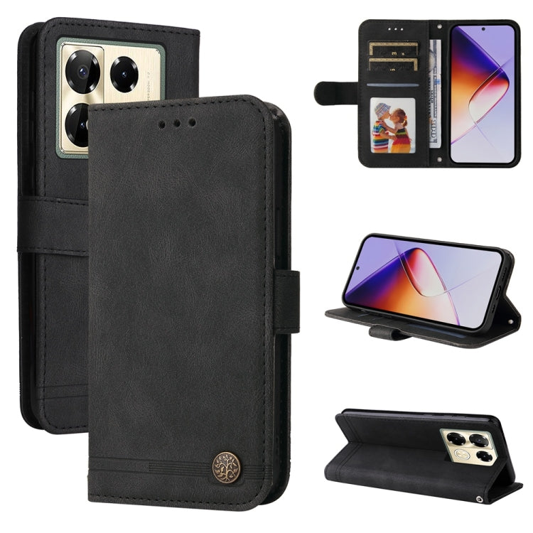 Funda de Cuero con Botones de Metal y Árbol de la Vida para Infinix Note 40 Pro 4G/5G/Pro+ (Negro)