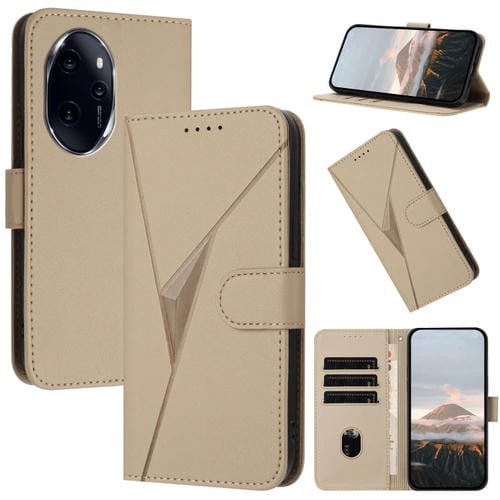 Funda de Cuero para Honor 100 Pro con Cierre de Hebilla y Diseño Triangular (Dorada)