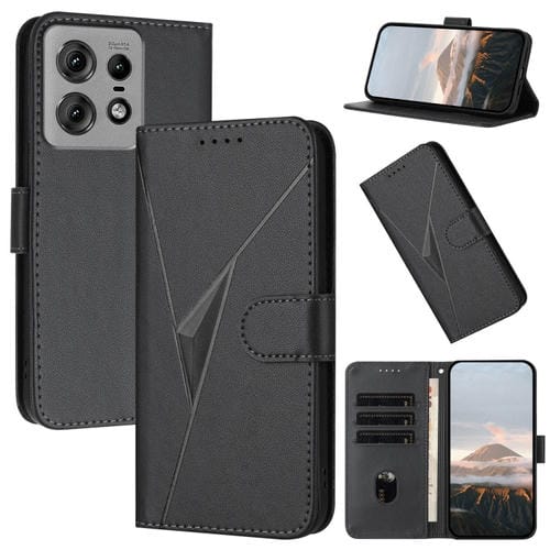 Funda de Cuero Motorola Edge 50 Pro con Cierre de Hebilla y Diseño Triangular (Negra)
