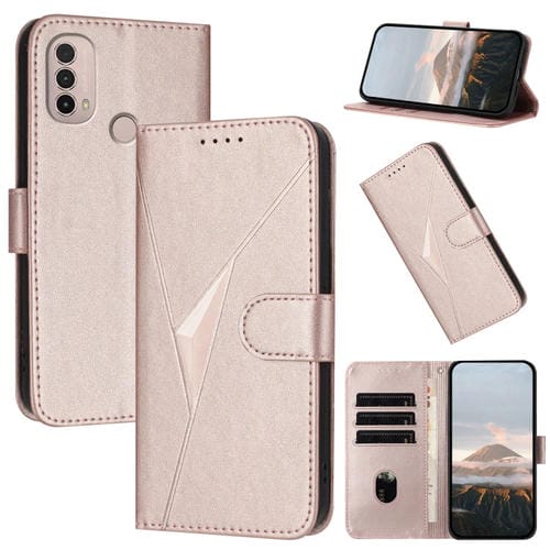 Funda de Cuero Motorola Moto E40 con Cierre de Hebilla y Diseño Triangular (Oro Rosa)