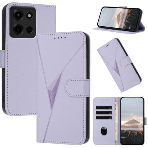Funda de Cuero con Cierre de Hebilla y Diseño Triangular para Motorola Moto G 2025 (Morado Claro)