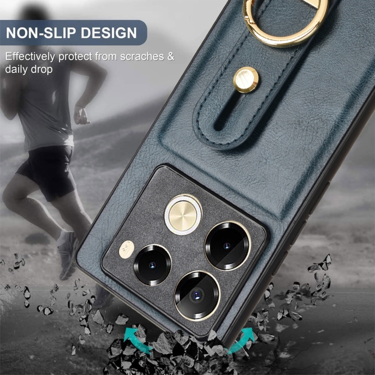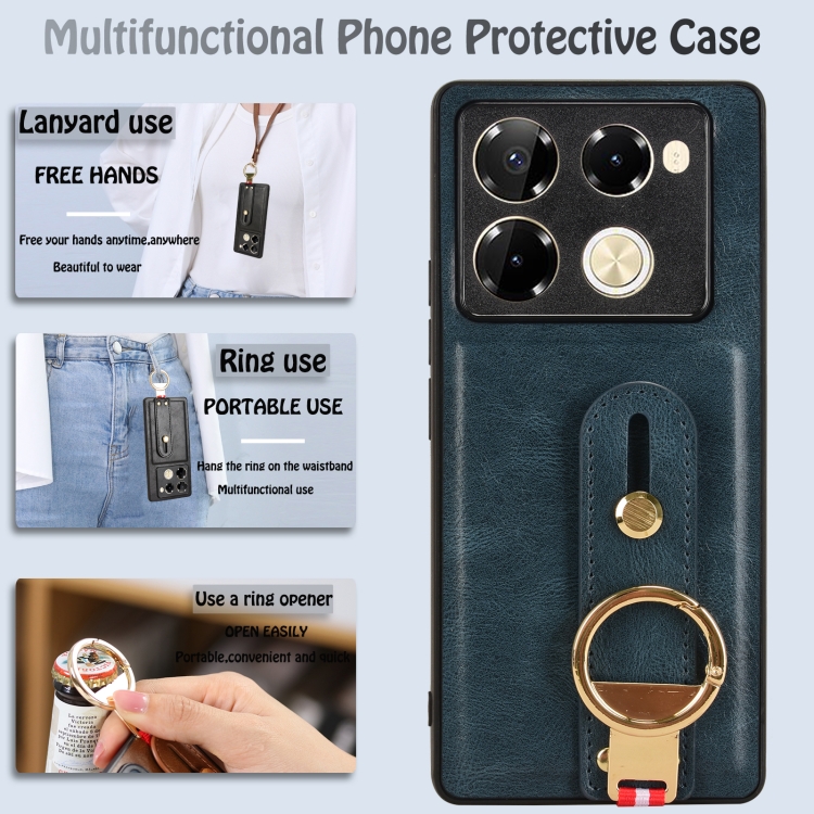 Funda de Cuero con Correa para el Cuello para Infinix Note 40 Pro 4G X6850 (Azul)