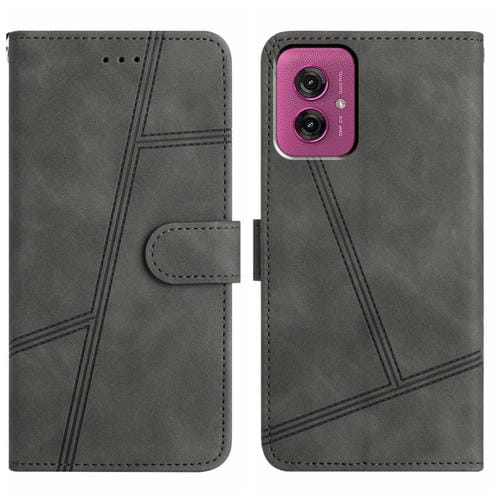 Funda de Cuero con Costuras para Motorola Moto G55 (Gris) Tacto Suave