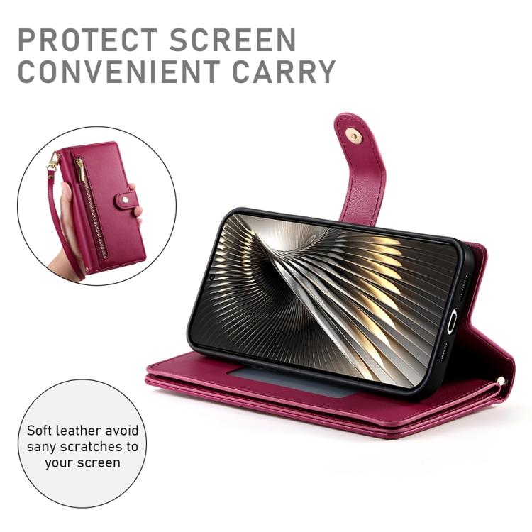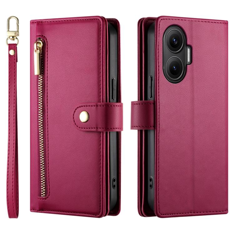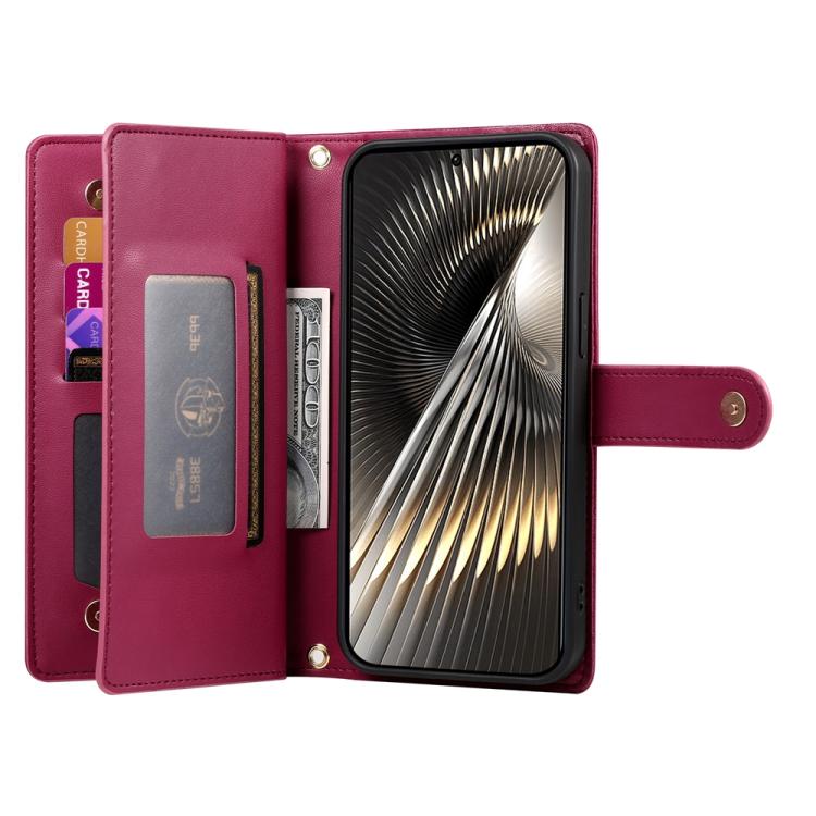 Funda de cuero con cremallera y ranura para tarjetas para Redmi Turbo 4 Pro y Xiaomi Poco F7 (rojo)