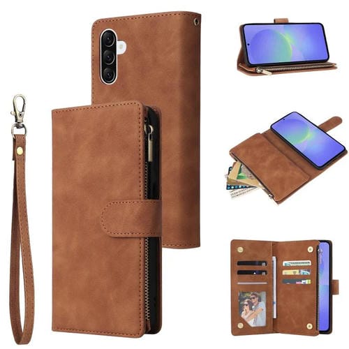 Funda de Cuero Samsung Galaxy A36 5G con Cremallera y Tarjetero Multifuncional (Marrón)