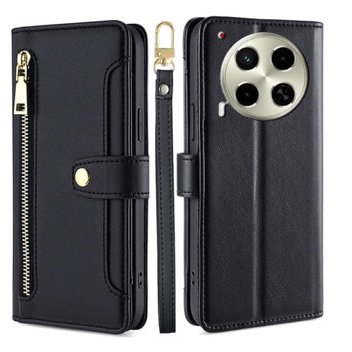 Funda de Cuero con Cremallera y Textura de Oveja para Tecno Camon 30 Lite (Negro)
