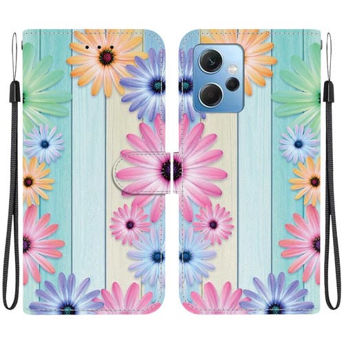 Funda de Cuero con Dibujo de Colores y Textura de Cristal Global para Redmi Note 12 4G (Girasoles)