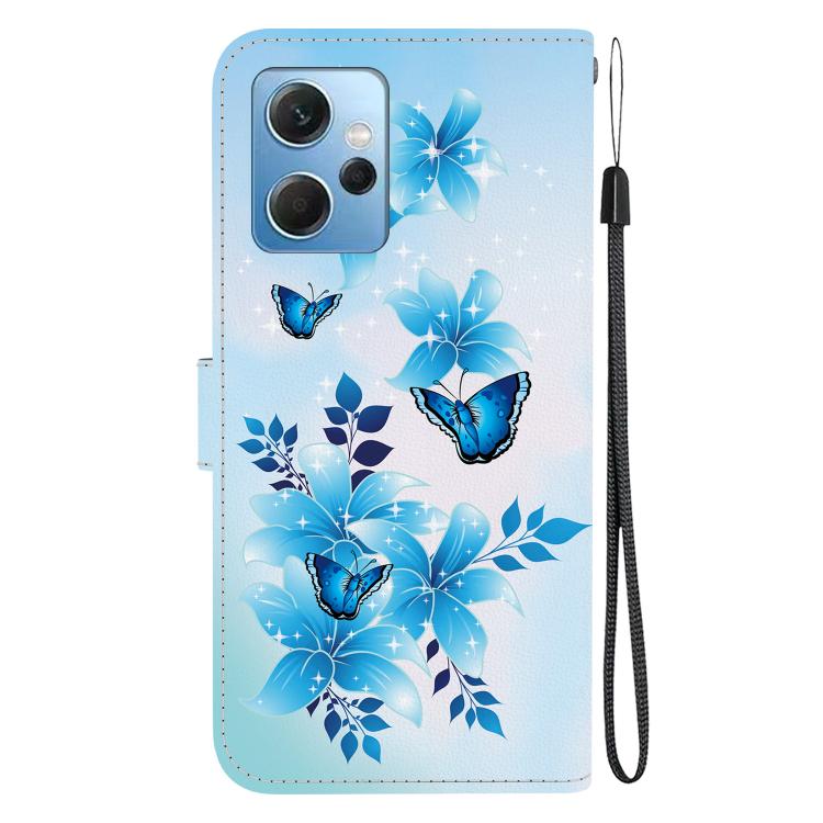 Funda de Cuero con Dibujo de Colores y Textura de Cristal Global para Redmi Note 12 4G (Mariposas Azules)