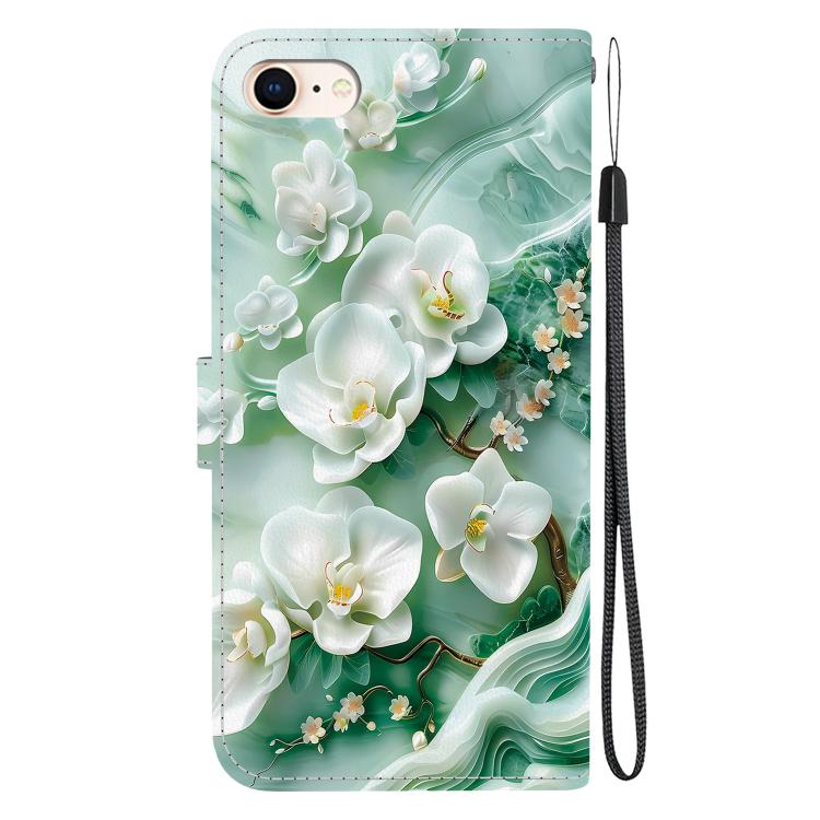 Funda de Cuero para iPhone 7/8/Se 2022 con Dibujo de Colores y Textura de Cristal (Flores de Jade)
