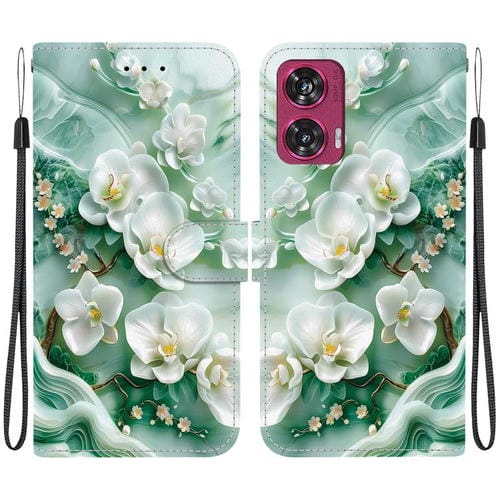 Funda de Cuero Motorola Edge 50 Fusion con Dibujo de Colores y Textura de Cristal (Flores de Jade)
