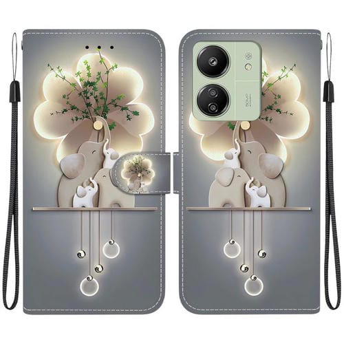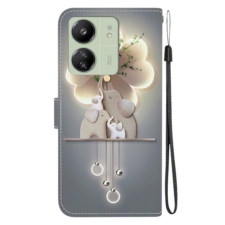 Funda de Cuero con Dibujo de Colores y Textura de Cristal para Redmi 13C 4G / 5G / 13R 5G (Elefantes)