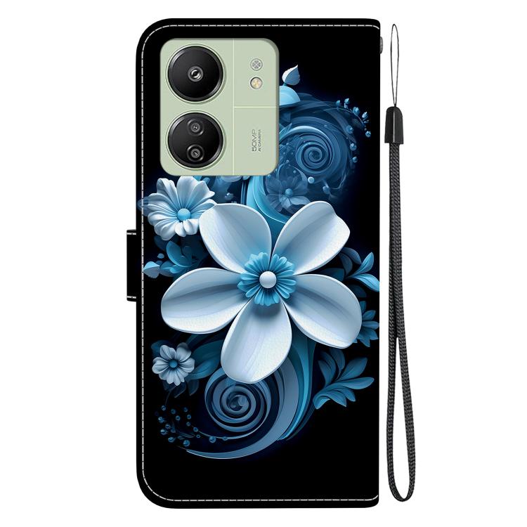 Funda de Cuero con Dibujo de Colores y Textura de Cristal para Redmi 13C 4G / 5G / 13R 5G (Orquídea Negra)
