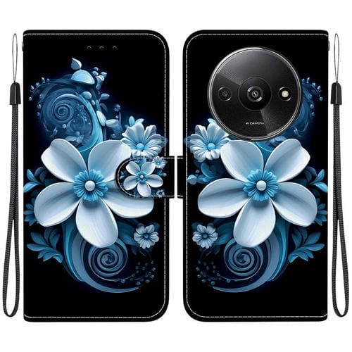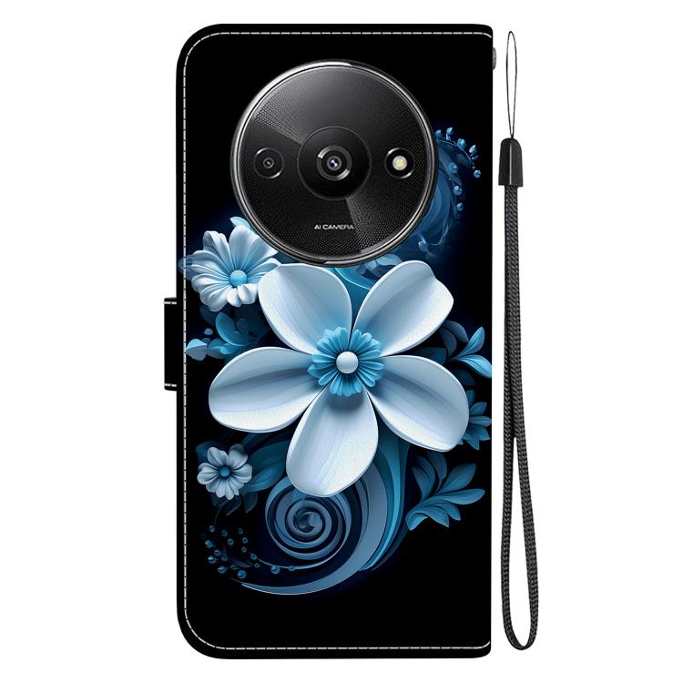 Funda de Cuero con Dibujo de Colores y Textura de Cristal para Redmi A3 (Orquídea Negra)