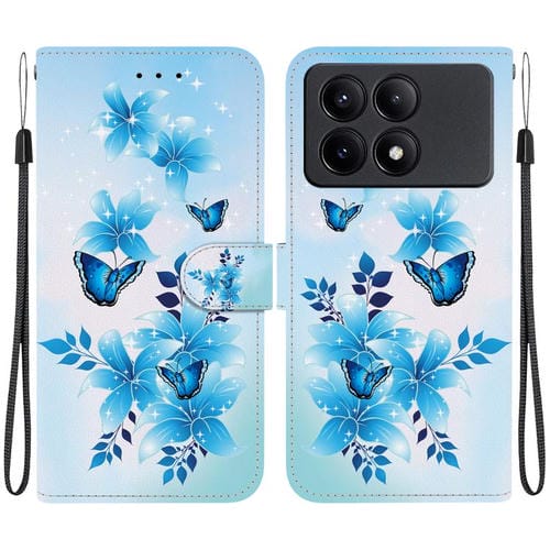 Funda de Cuero con Dibujo de Colores y Textura de Cristal para Redmi K70E/Poco X6 Pro (Mariposas Azules)