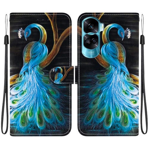 Funda de Cuero con Dibujo de Colores y Textura de Cristal para Honor 90 Lite (Pavo Real)