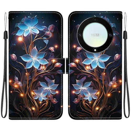 Funda de Cuero Honor X9A con Dibujo de Colores y Textura de Cristal (Flor de Linterna Pequeña)