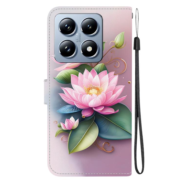 Funda de Cuero con Dibujo de Colores y Textura de Cristal para Xiaomi 14T Pro (Lotus)