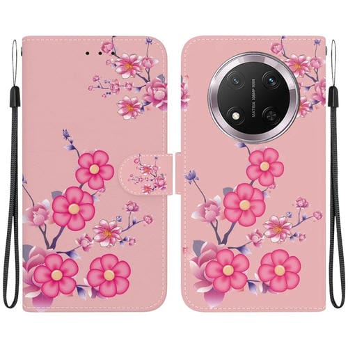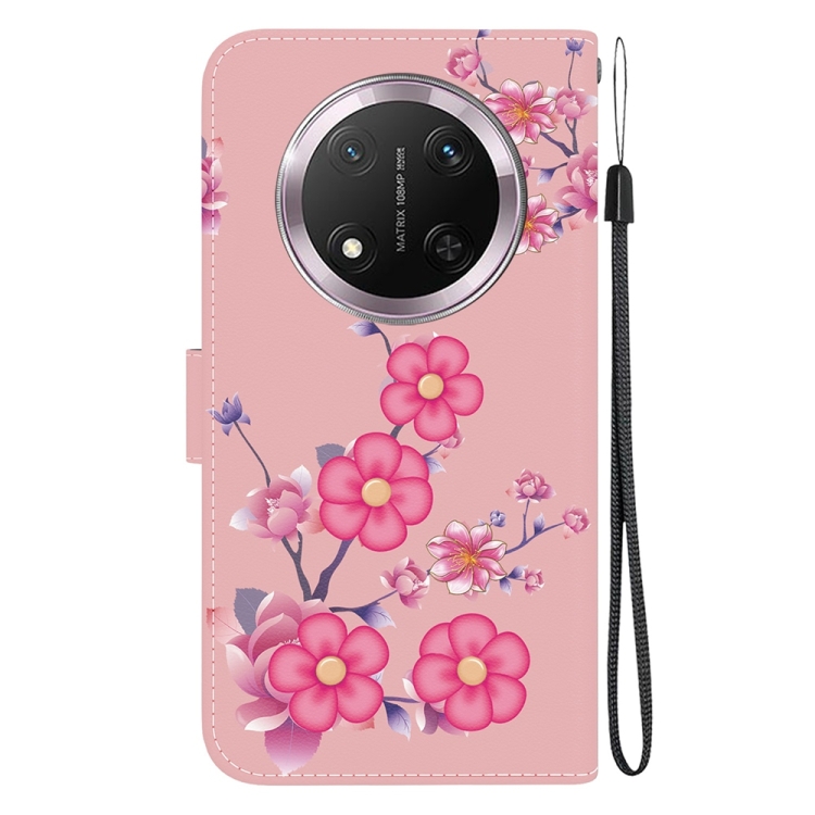 Funda de Cuero para Honor X9C con Dibujo Flores de Cerezo y Textura de Cristal