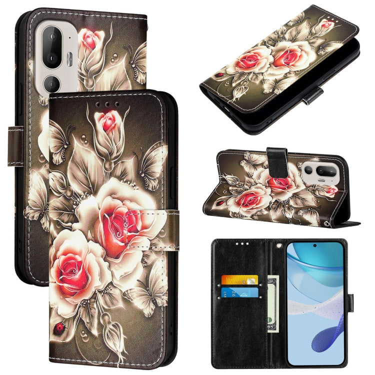 Funda de Cuero con Diseño de Dibujos para HTC U24 Pro (Rosas Sobre Negro)