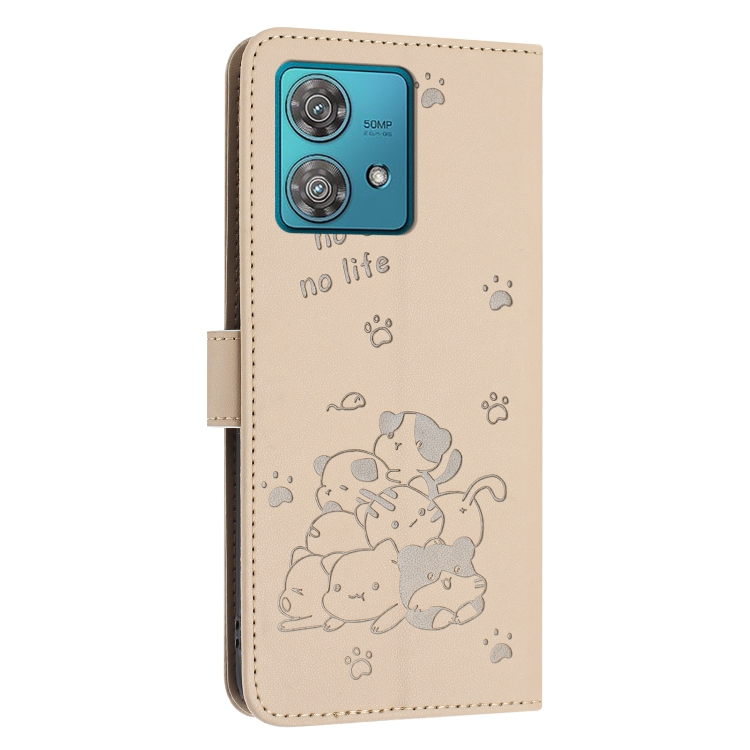 Funda de Cuero Motorola Edge 40 Neo con Diseño de Gatito En Relieve y Cordón (Beige)
