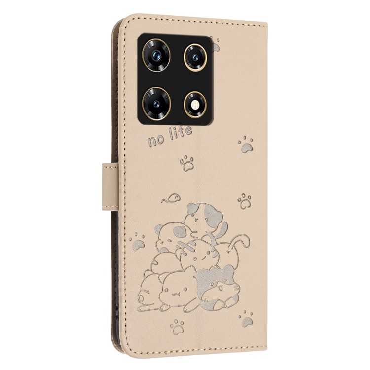 Funda de Cuero para Infinix Note 30 Pro con Diseño de Gatito en Relieve y Cordón (Beige)