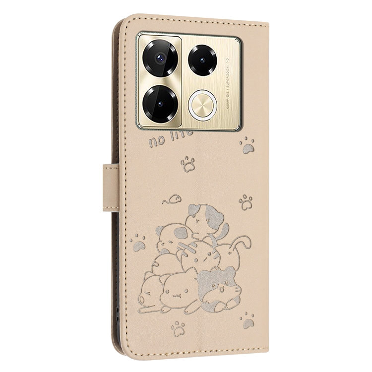 Funda de Cuero Infinix Note 40 Pro 4G/5G con Diseño de Gatito en Relieve y Cordón (Beige)