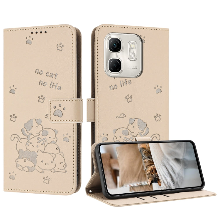 Funda de Cuero Infinix Smart 9 5G Hot 50I 5G con Diseño de Gatito y Cordón (Beige)