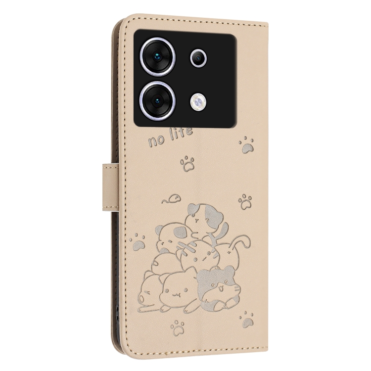 Funda de Cuero Infinix Zero 30 5G con Diseño de Gatito en Relieve y Cordón (Beige)